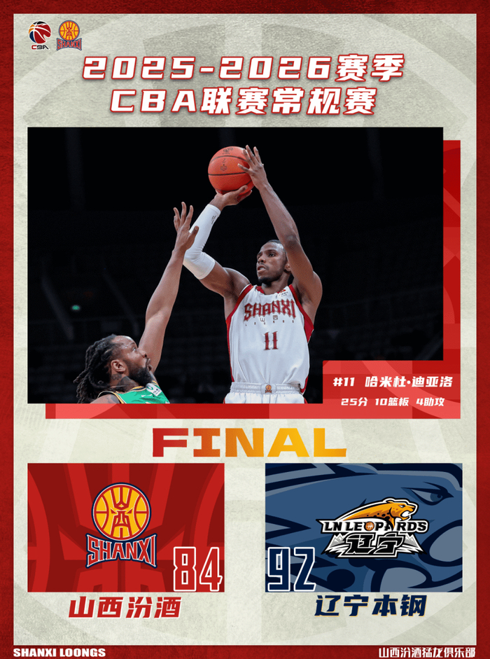 山西汾酒客场挑战辽宁本钢 8492告负遭遇三连败