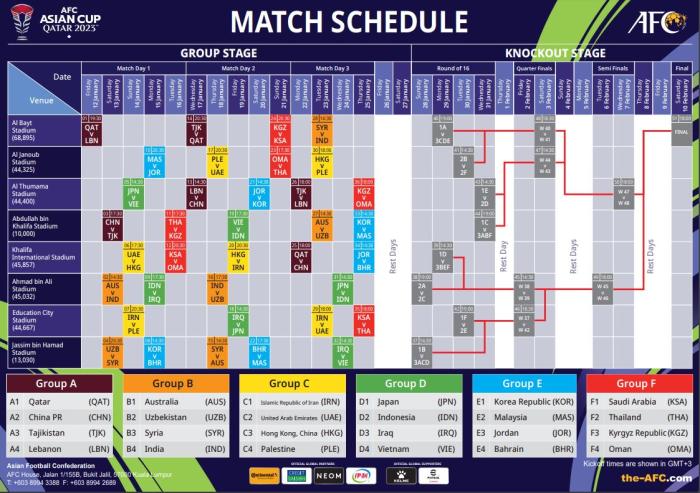 2023亚洲杯赛程公布 中国男足A组迎战塔吉克斯坦